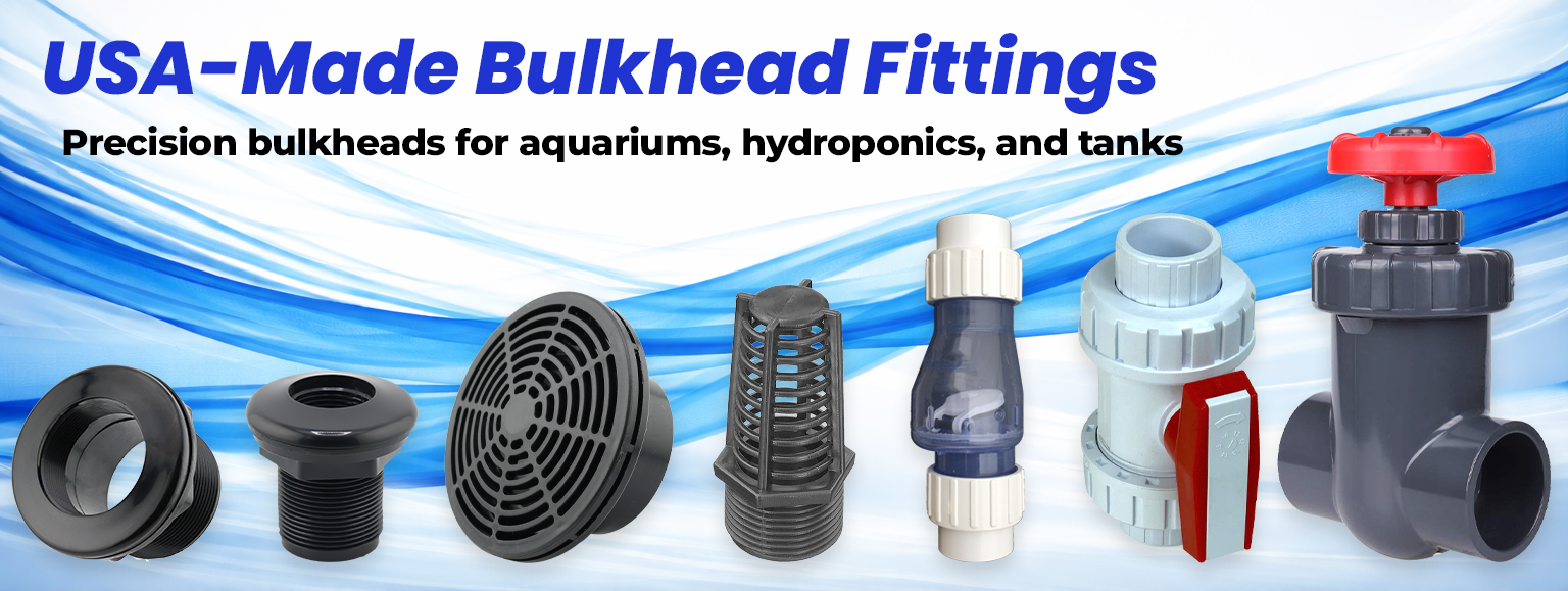 Our bulkhead fittings are designed for reliable, leak-free connections in aquariums, hydroponic systems, tanks, and plumbing applications. Manufactured in the USA from durable ABS material, they feature thick-wall construction for added strength and long-term performance.